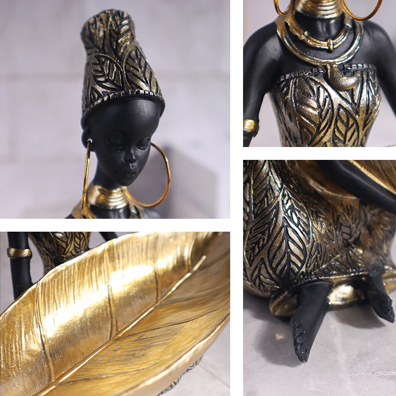Add a touch of cultural elegance and artistic charm to your space with this African girl holding a plate sculpture. Beautifully designed with vintage-inspired details, this decorative piece captures grace and tradition while serving as a functional storage ornament. The plate held by the figure can be used to hold small items like keys, jewelry, or office essentials, making it both stylish and practical. Its unique design makes it a standout accent for desks, shelves, coffee tables, or entryways. Crafted with attention to detail, it reflects a handcrafted aesthetic that enhances its collectible appeal. Perfect for home or office décor, it brings warmth, personality, and a story to any setting. This sculpture also makes a thoughtful gift for art lovers or anyone who appreciates cultural décor. Elevate your interior with a piece that combines beauty, function, and timeless style.