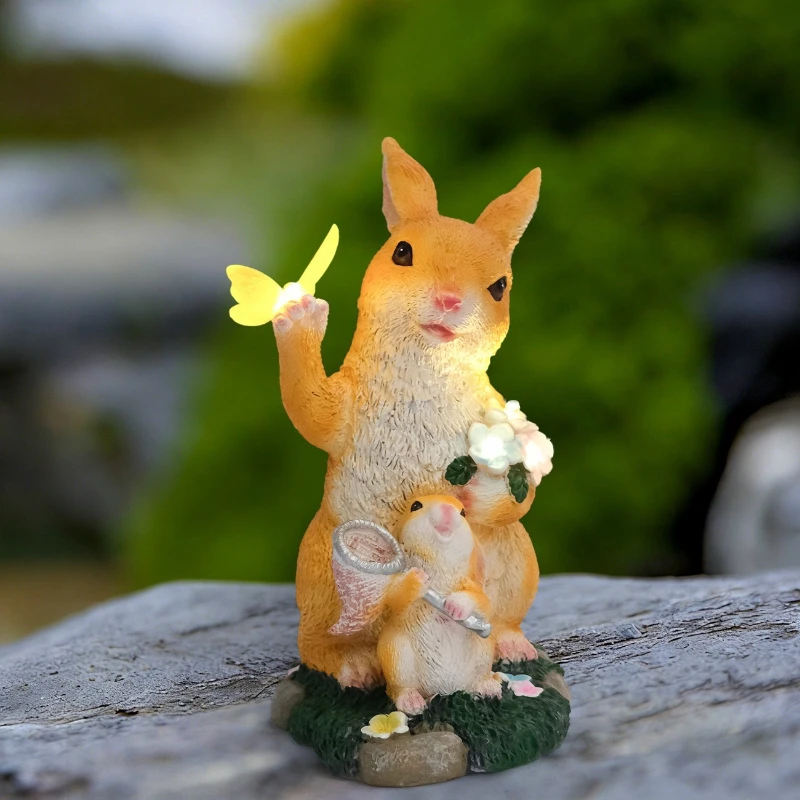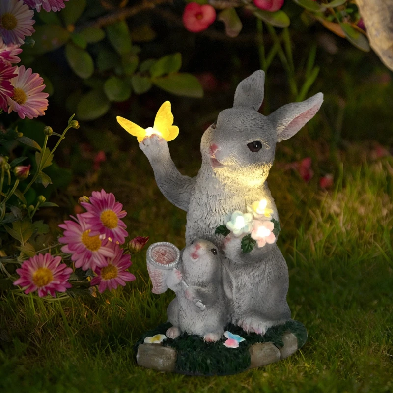 Add charm and enchantment to your space with these glow-in-the-dark butterfly and rabbit figurines designed for both decoration and soft illumination. Powered by solar energy, they charge during the day and emit a gentle glow at night, creating a magical atmosphere in gardens, patios, or indoor spaces. The detailed animal designs bring a playful and nature-inspired touch, making them perfect for enhancing outdoor landscapes or decorating desks and shelves. Built for versatility, they can be used as garden ornaments or indoor accents to brighten any environment. Crafted with durable materials, these figurines are designed to withstand outdoor conditions while maintaining their vibrant appearance. Their soft glow adds warmth and character without being overpowering, ideal for relaxing evenings or decorative displays. Easy to place and requiring no wiring, they offer a hassle-free way to elevate your décor. Bring a whimsical glow to your home or garden with these unique solar-powered decorations.